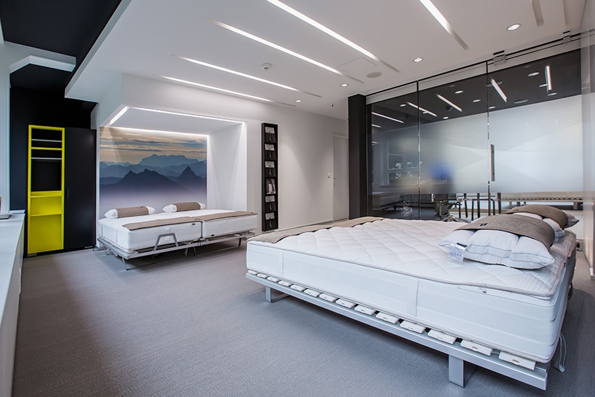 Um das richtige Schlafsystem zu finden, können Sie vor Ort in ruhigem Ambiente probeliegen.